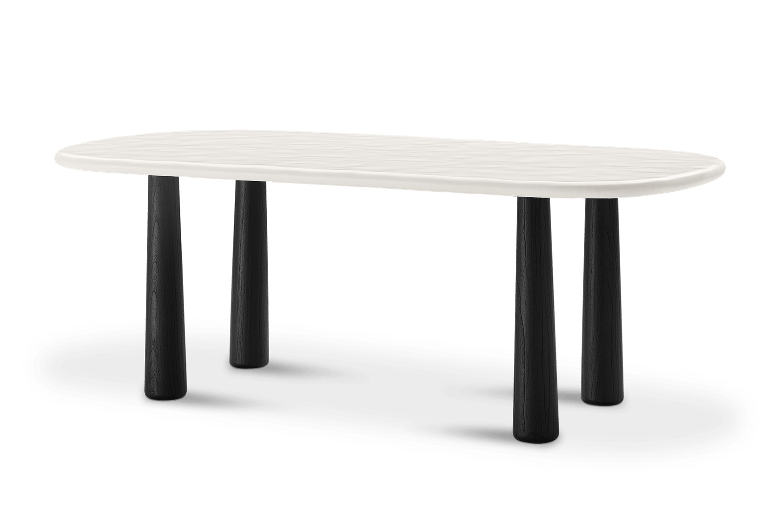 Tabletop: wavy glossy; Legs: clear lacquer